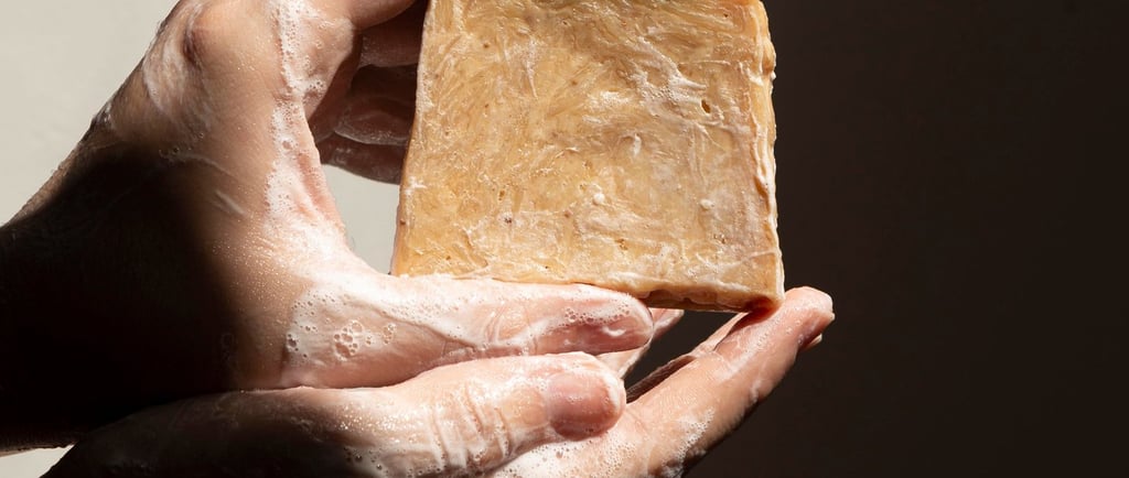 Frota la pastilla entre las manos o sobre una esponja para crear espuma.